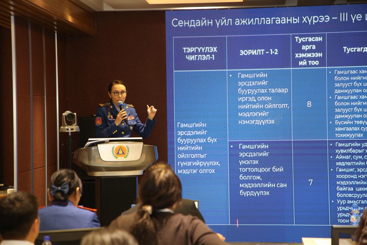 ОБЕГ-ын дарга, хошууч генерал Г.Ариунбуян хэлсэн үгэндээ “Энэхүү баримт бичгийн III үе шатыг хэрэгжүүлэх төлөвлөгөөний төслийг боловсруулахдаа II үе шатны төлөвлөгөөнөөс хэрэгжилт хангалтгүй байгаа арга хэмжээ, Засгийн газрын 2015 оны 303 дугаар тогтоолоор батлагдсан “Гамшгийн эрсдэлийг олон нийтийн оролцоотой бууруулах үндэсний хөтөлбөр”, НҮБ-ын КАДРИ үнэлгээний багаас Монгол Улсад хийсэн чадавхын үнэлгээнээс гаргасан зөвлөмж болон шинээр тусгагдсан арга хэмжээ зэрэг нийт 54 арга хэмжээг хэрэгжүүлэхээр төлөвлөсөн байна. Гамшгийн эрсдэлийг бууруулахад салбарын хэмжээнд шаардлагатай арга хэмжээг тусгах, салбарын уялдаа холбоог хангах, үндэсний хэмжээнд Сендайн үйл ажиллагааны хүрээ баримт бичгийн тэргүүлэх чиглэл, зорилтын хэрэгжилтийг хангахад онцгой анхаарч, эрсдэлийг бууруулахад чиглэсэн арга хэмжээг бодитой төлөвлөн хэрэгжүүлэх шаардлага үүсэж байна” гэлээ.