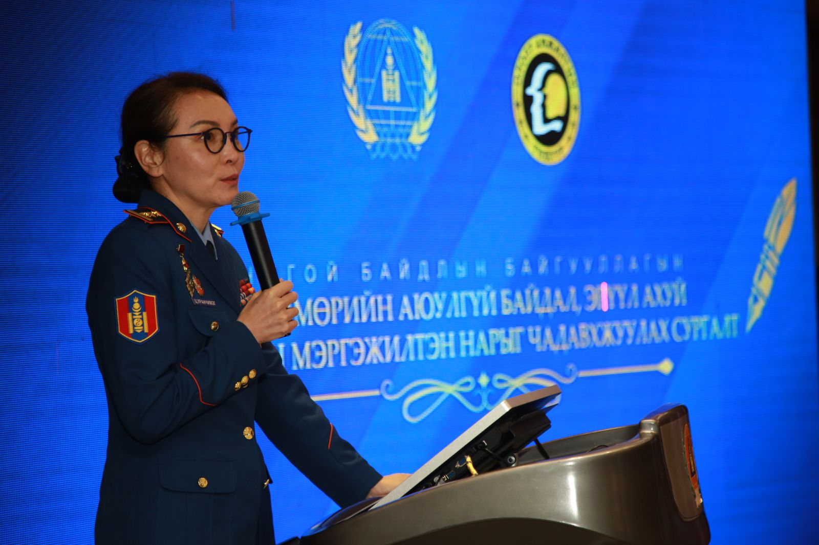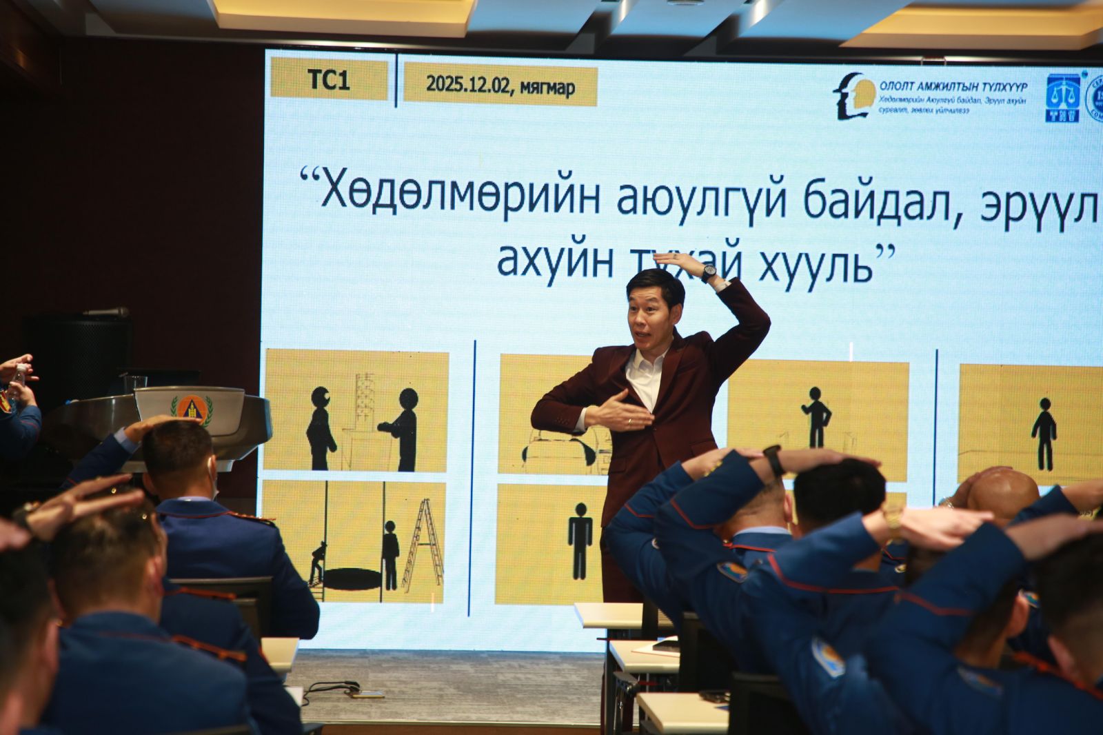 Сургалтын арга хэмжээнд ОБЕГ-ын дэд дарга, хурандаа Ц.Уранчимэг оролцож хэлсэн үгэндээ “Онцгой байдлын байгууллагаас 2025 онд “Алба хаагчдын хөдөлмөрийн аюулгүй байдал, эрүүл ахуй, аюулгүй ажиллагааг хангах, сахилга бат, хариуцлагыг дээшлүүлэх зорилт”-ыг дэвшүүлж, алба хаагчдын хөдөлмөрийн аюулгүй байдал, эрүүл ахуйн нөхцөлийг сайжруулах, үйлдвэрлэлийн осол, хурц хордлогын эрсдэлийг бууруулах чиглэлээр олон талт арга хэмжээг шат дараатай хэрэгжүүлж байна. Мөн “Хөдөлмөрийн аюулгүй байдал, эрүүл ахуйг сайжруулах зарим арга хэмжээний тухай” албан даалгаврыг батлан, нийт байгууллагуудад хүргүүлж, хэрэгжилтэд тогтмол хяналт тавьж ажиллалаа. Гэр бүл, хөдөлмөр, нийгмийн хамгааллын яамтай хамтран улсын хэмжээнд 152 газар, хэлтэс, анги, салбарт иж бүрэн үзлэгийг зохион байгуулсан.Тиймээс энэхүү сургалтаар сурсан мэдлэгээ байгууллагынхаа өдөр тутмын үйл ажиллагаанд нэвтрүүлж, тогтолцоог боловсронгуй болгох, осол гэмтлээс урьдчилан сэргийлэх ажлын чанар, үр дүнг шинэ шатанд гарган ажиллана гэдэгт итгэж байна” гэлээ.